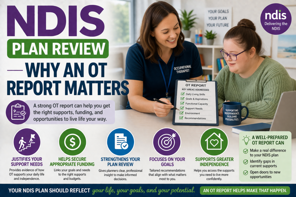 An NDIS plan review is one of the highest-stakes moments in a participant’s journey through the scheme. The evidence submitted at review — and the quality and completeness of that evidence — directly determines whether the next plan is adequate, generous, or insufficient. Of all supporting documents, a comprehensive, well-timed OT report is the most consistently powerful.