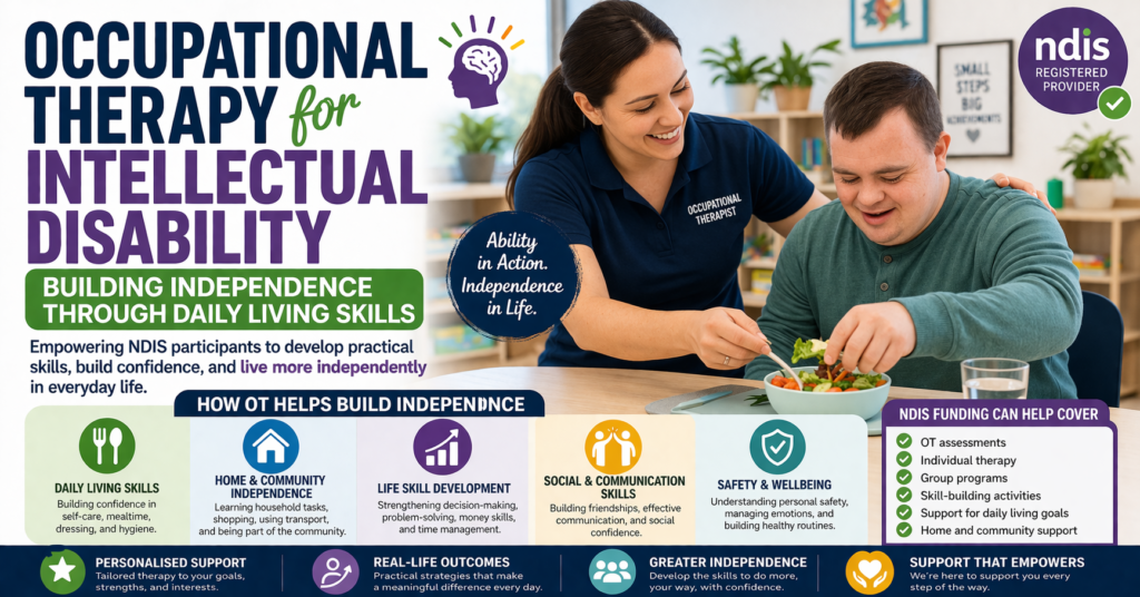 For people living with an intellectual disability, independence in daily life is not a given — it is something that must be actively built, practised, and supported. The capacity to get dressed in the morning, prepare a meal, manage a bus journey, or handle money does not develop automatically; for many people with intellectual disability, it requires structured, patient, skilled therapeutic support to achieve.